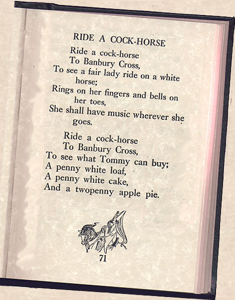 71 RIDE A COCK HORSE TO BANBURY CROSS,